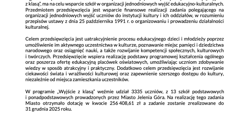 Celem przedsięwzięcia „Wyjście z klasą” jest uatrakcyjnienie procesu edukacyjnego dzieci.