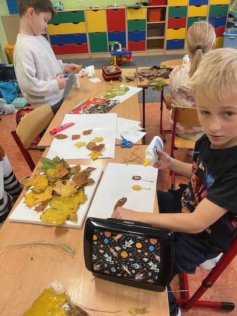 Świetliczaki grupy 1 celebrując złotą polską jesień wykonywały prace plastyczne na konkurs „KREATYWNE LIŚCIE”. Dzieci sumiennie pracowały i udowodniły swoją pomysłowość różnorodnością tematyki utrzymanej w konwencji jesiennej.